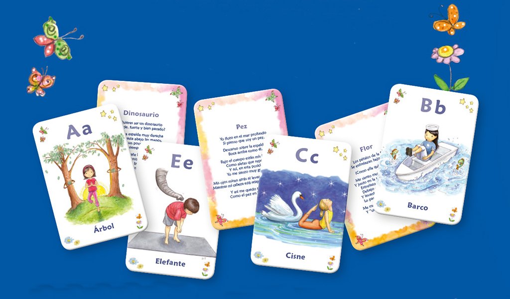 Hemos publicado estas 48 cartas ilustradas a mano que representan muchas posiciones diferentes de yoga inspiradas en el mundo de la naturaleza, de los animales y de la fantasía. Cada posición también representa una letra del alfabeto y están acompañadas por hermosos textos en rima que guían a los niños en la ejecución de las posturas.