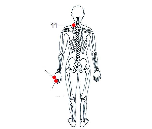 Los siguientes toques le ayudan a soltar lo que ya no necesita, a trabajar cosas y a soportar lo que carga, pero con su propia energía. Puede desprenderse de todo aquello que ya no le hace falta. Encontrará siempre el equilibrio, sin atarse a nada fijo, sin paralizarse y con flexibilidad y movimiento. Coloque la mano derecha sobre la CES 11 izquierda y forme con la mano izquierda un círculo con el pulgar y el dedo índice de forma que las puntas de ambos dedos se toquen.