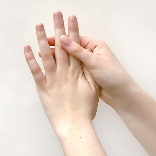 | La posición 4 de los dedos disuelve estrés y preocupaciones, limpia y renueva. Se le llama también “conserje del estilo de vida” y le ayuda a tener un buen equilibrio entre actividades y descansos. Sostenga la parte trasera del pulgar izquierdo, del anular y del dedo corazón con el pulgar derecho mientras los otros dedos de la mano derecha los sostienen por delante. Para la otra mano lo hace a la inversa. |